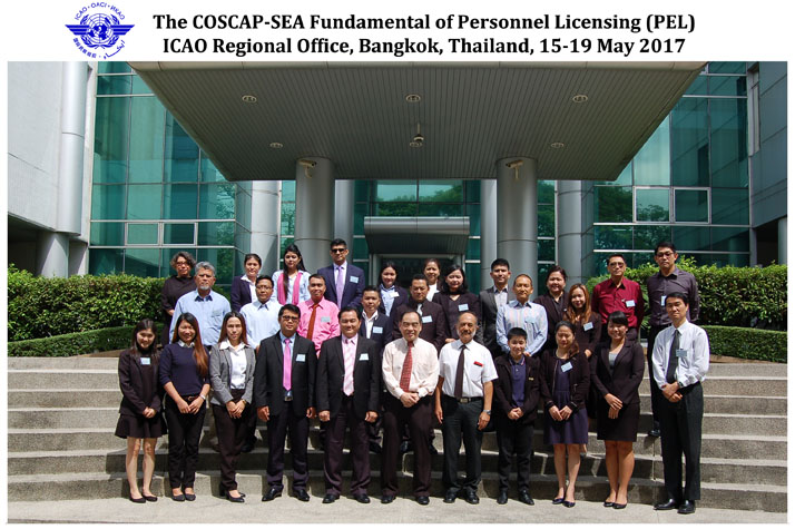 ICAO COSCAP SEA - Fundamental of Personnel Licensing (15-19 May 2017, Bangkok, Thailand) ICAO COSCAP-SEA project and Civil Aviation Authority of Singapore presented the 2017 Training Programme for Government Safety Inspectors with four courses in the initial phase of the training programme. The fourth course "Fundamental of Personnel Licensing" was held at the ICAO APAC Regional Office in Bangkok, Thailand from 15 to 19 May 2017. The course was attended by 30 participants from 10 States/ Administrations. The training covered the fundamental knowledge as well as case studies related to licensing issues encountered by the Personnel Licensing Officers and Inspectors. The course was conducted by Mr. Allan Tang (Principal Training Specialist, Singapore Aviation Academy). All documents are available at: http://www.icao.int/APAC/Meetings/Pages/2017-PEL.aspx