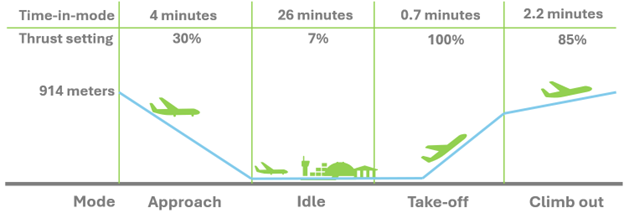 Figure 1 - Illustration of ICAO emissions certification procedure representing the LTO cycle